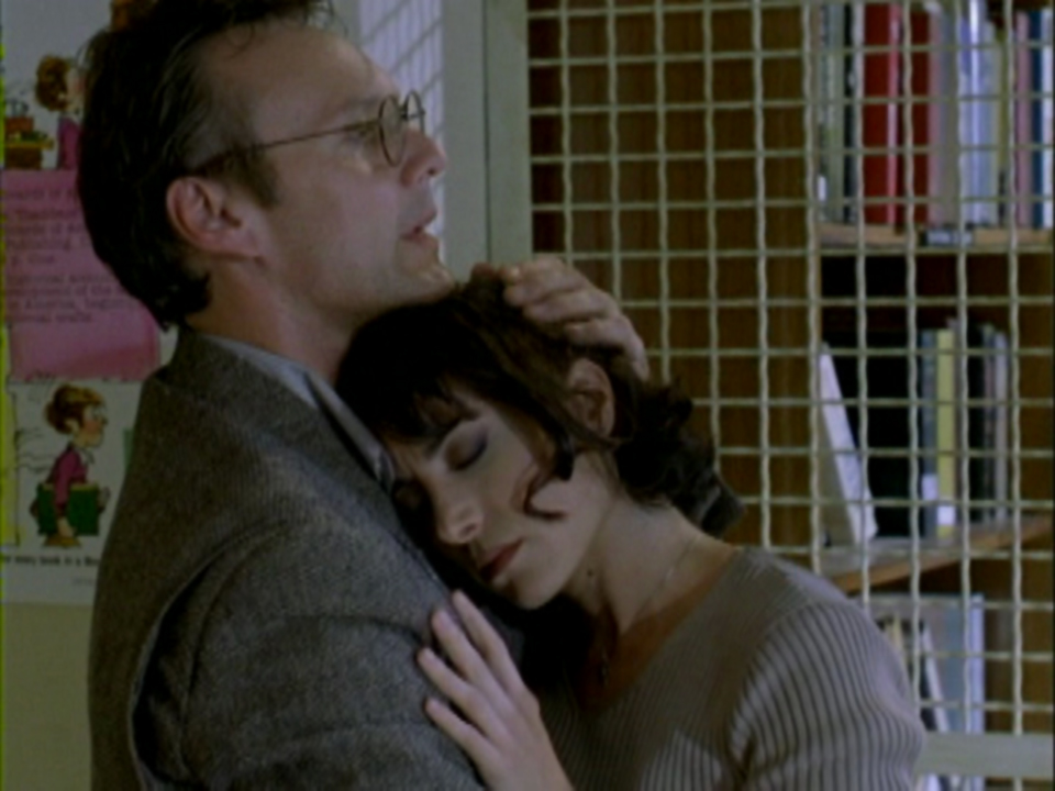It’s surprising how many of the significant moments in this episode and the previous one involve water. Angel jumping in to save Buffy at the dock. Their escape from the factory (and what follows). Angel stumbling outside in the rain just before his soul leaves him. Their fight as water pours from the sprinkler system at the mall.